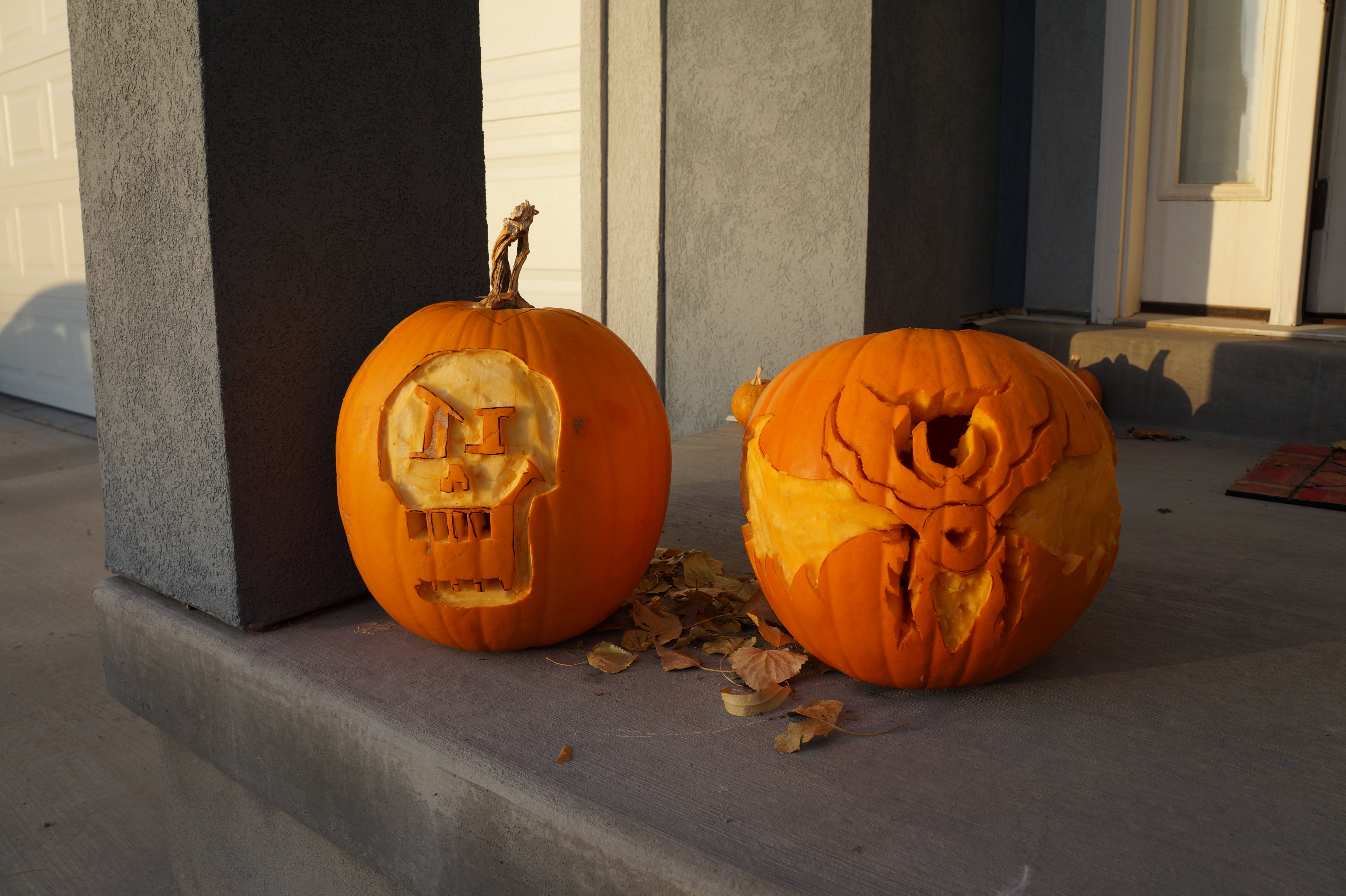 Nick's and Beth's pumpkins (She did hers mostly on her own)