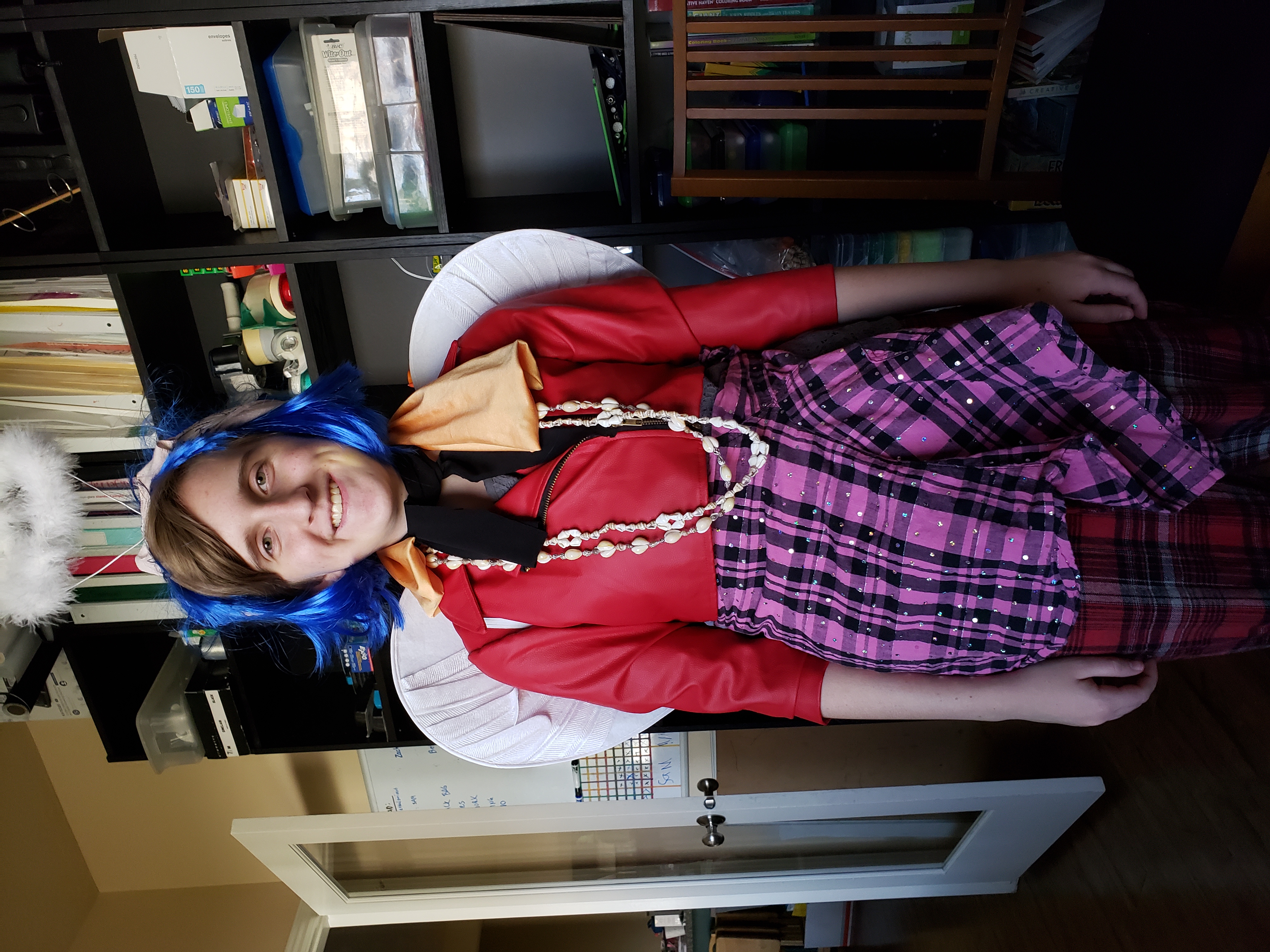 Beth in her Everything-I-found-in-my-room outfit