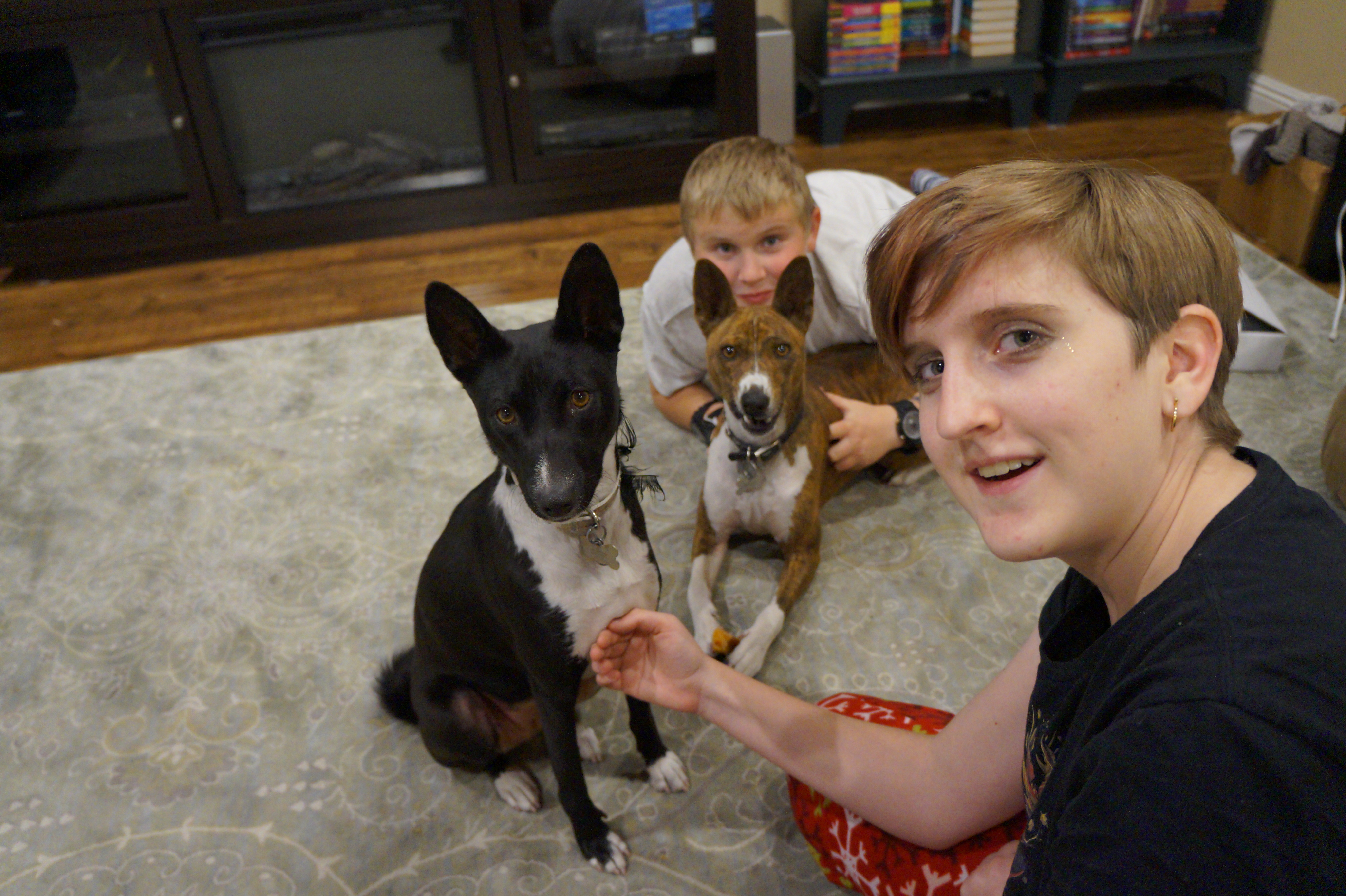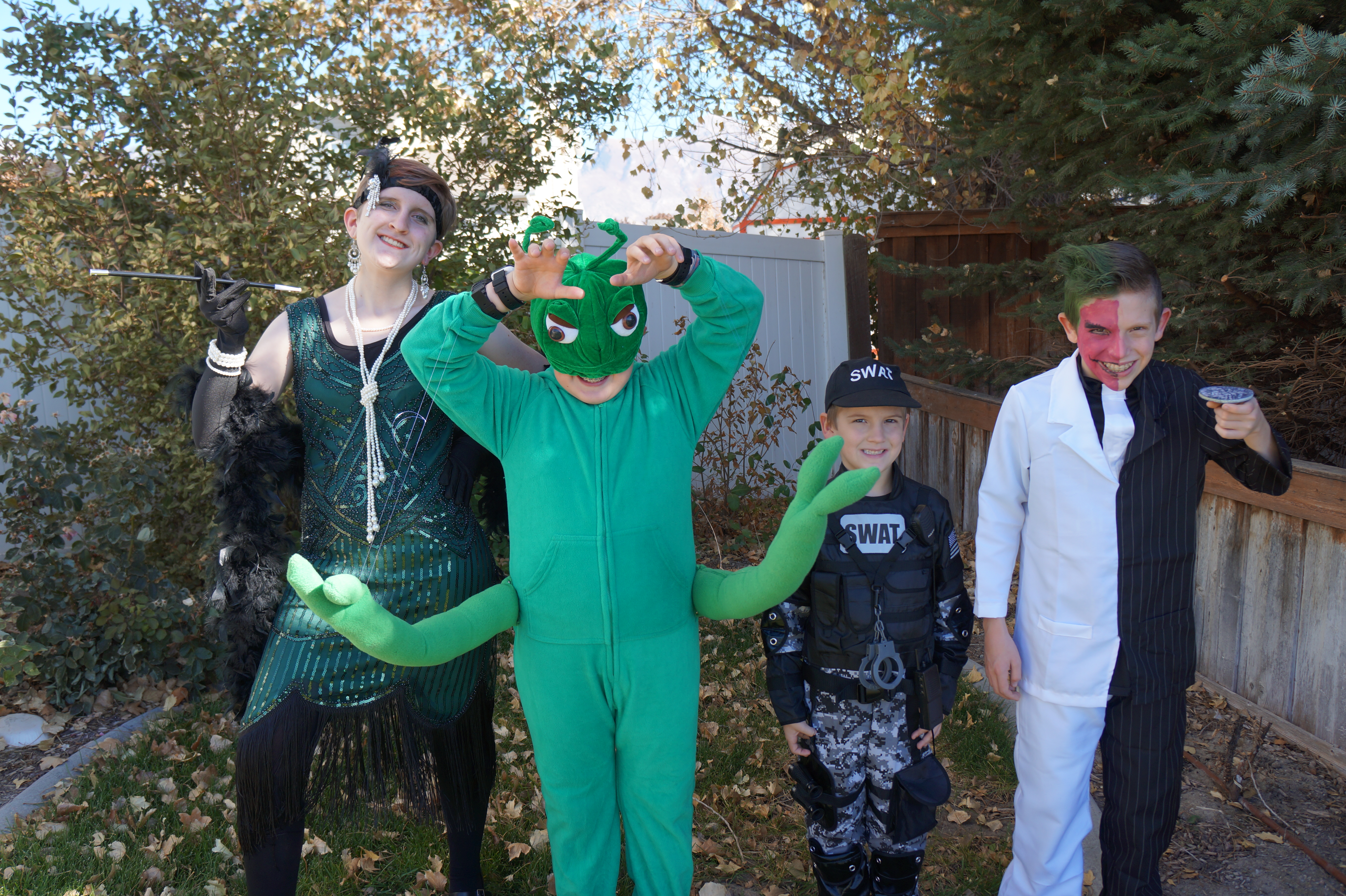 Testing the light for the family picture--Beth does not approve Beth with Hannah Sam at the top ready to go canyoneering The first rappel Zack knows how to ride a bike! Zack can also do flips on the trampoline Nick's book report - a scary realtor Nick and Zack built a tower Costumes for Halloween With the puppies The pumpkins