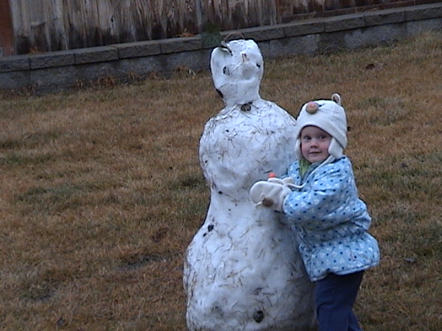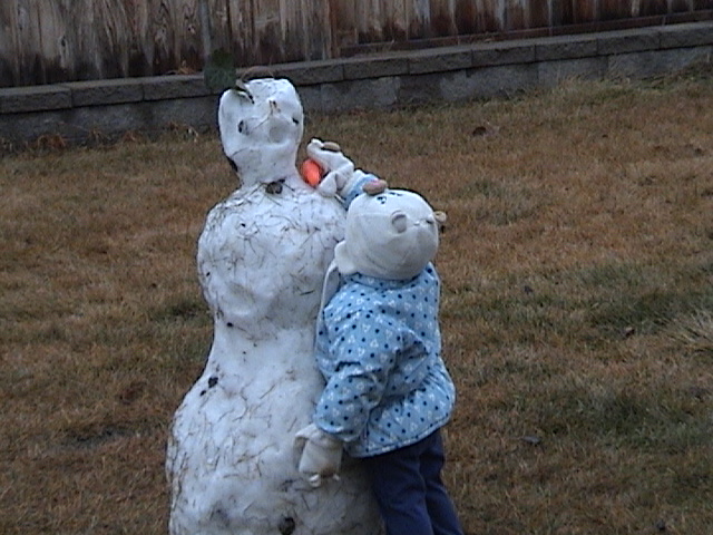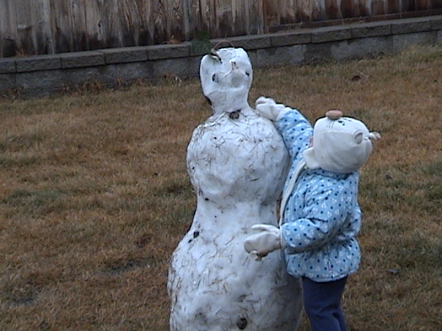 Hugging her new friend, the snowman. She actually cried for several minutes when we took her back inside.