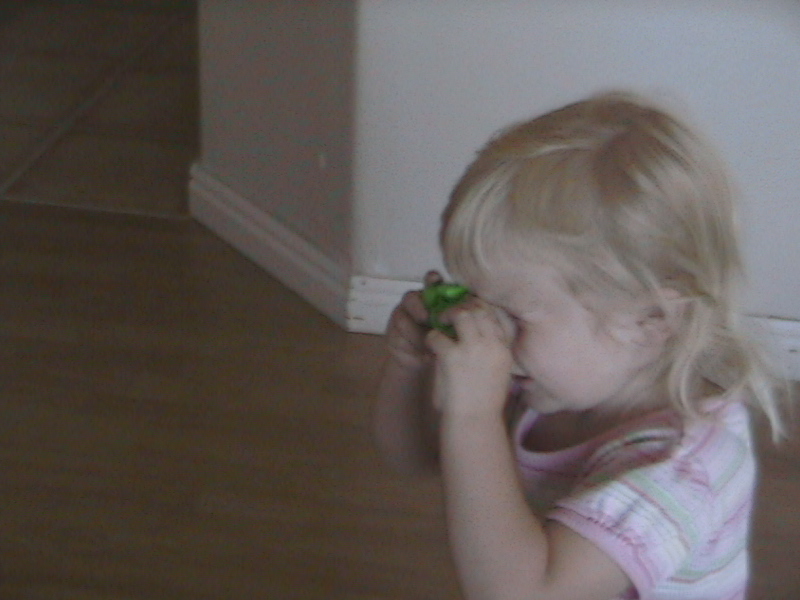 2005-09-03: With her duck (and some Duplos)